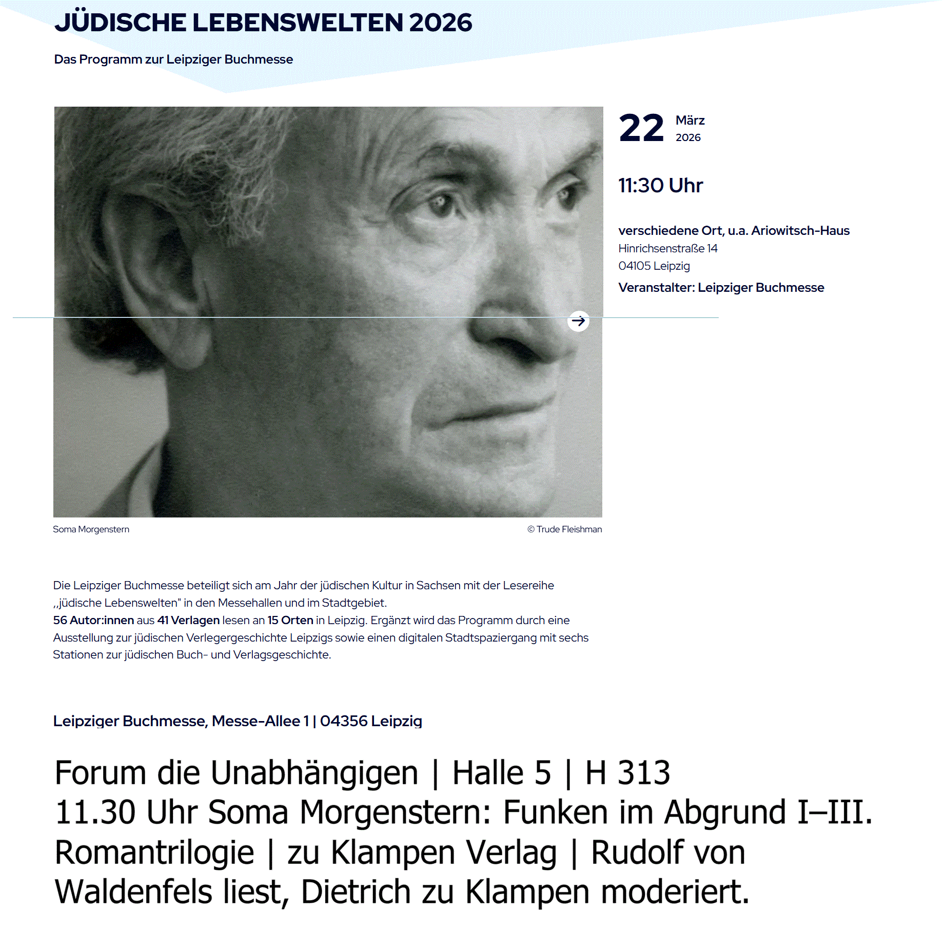 Soma Morgenstern im Portrait - Vortrag und Lesung.